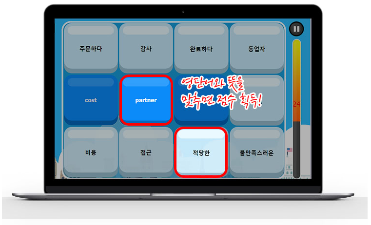 제한 시간 내에 아는 토익 단어를 빨리 짝 지어야 하기 때문에