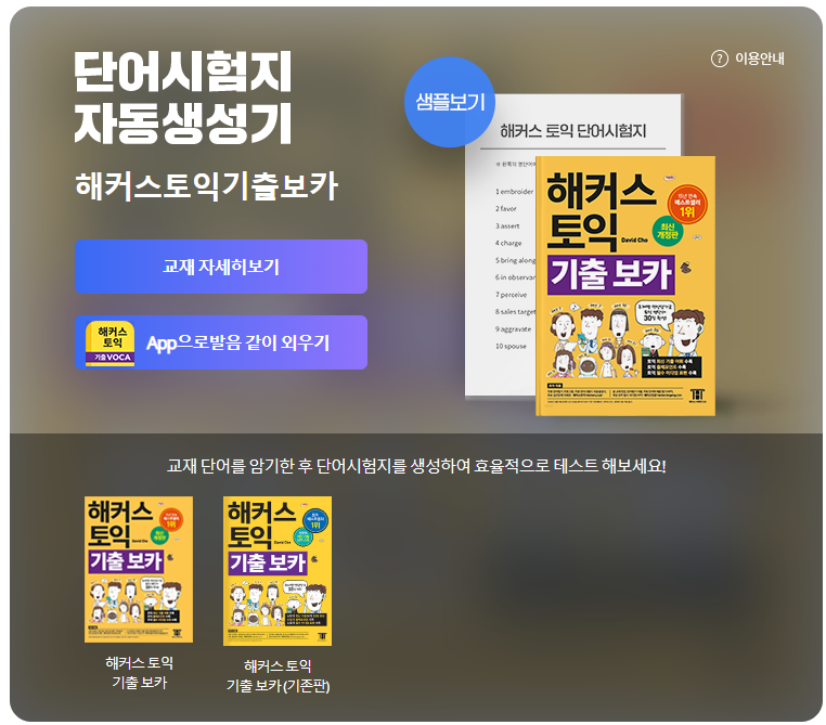 토익 공부하는 수험생들이라면 특히, 해커스 토익기출보카로 공부하는 분들이라면