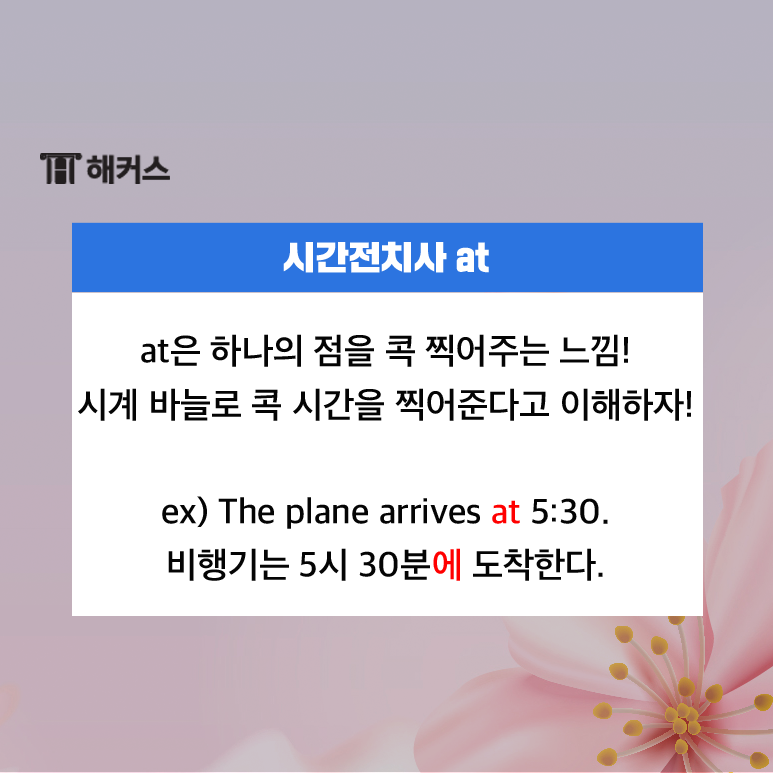 그러다보니 at은 주로 시계 바늘이 가리키는 시간을