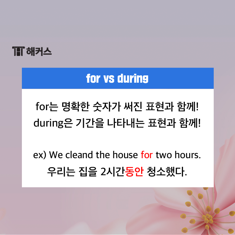 시간 전치사 for와 during의 차이를 설명드릴게요!