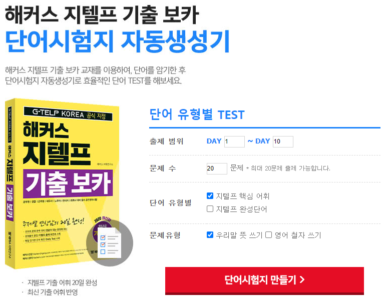단어 유형과 문제 유형을 고르면 지텔프 시험에 꼭 나오는 단어에 대한
