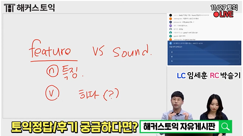 11월 27일 토익 정답 해설을 해커스 스타 강사 선생님들이