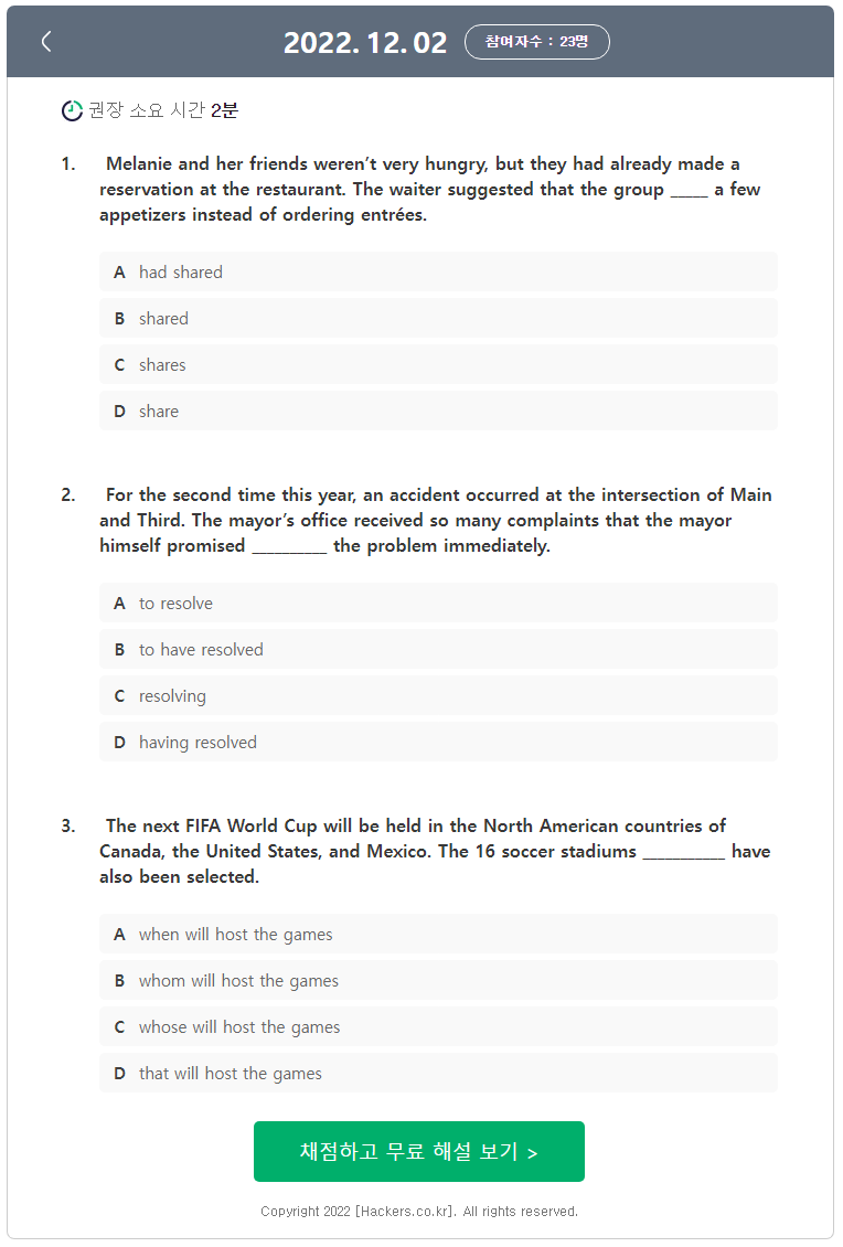 지텔프 문법문제를 풀 수 있는 100% 무료 컨텐츠라고 생각하시면 돼요