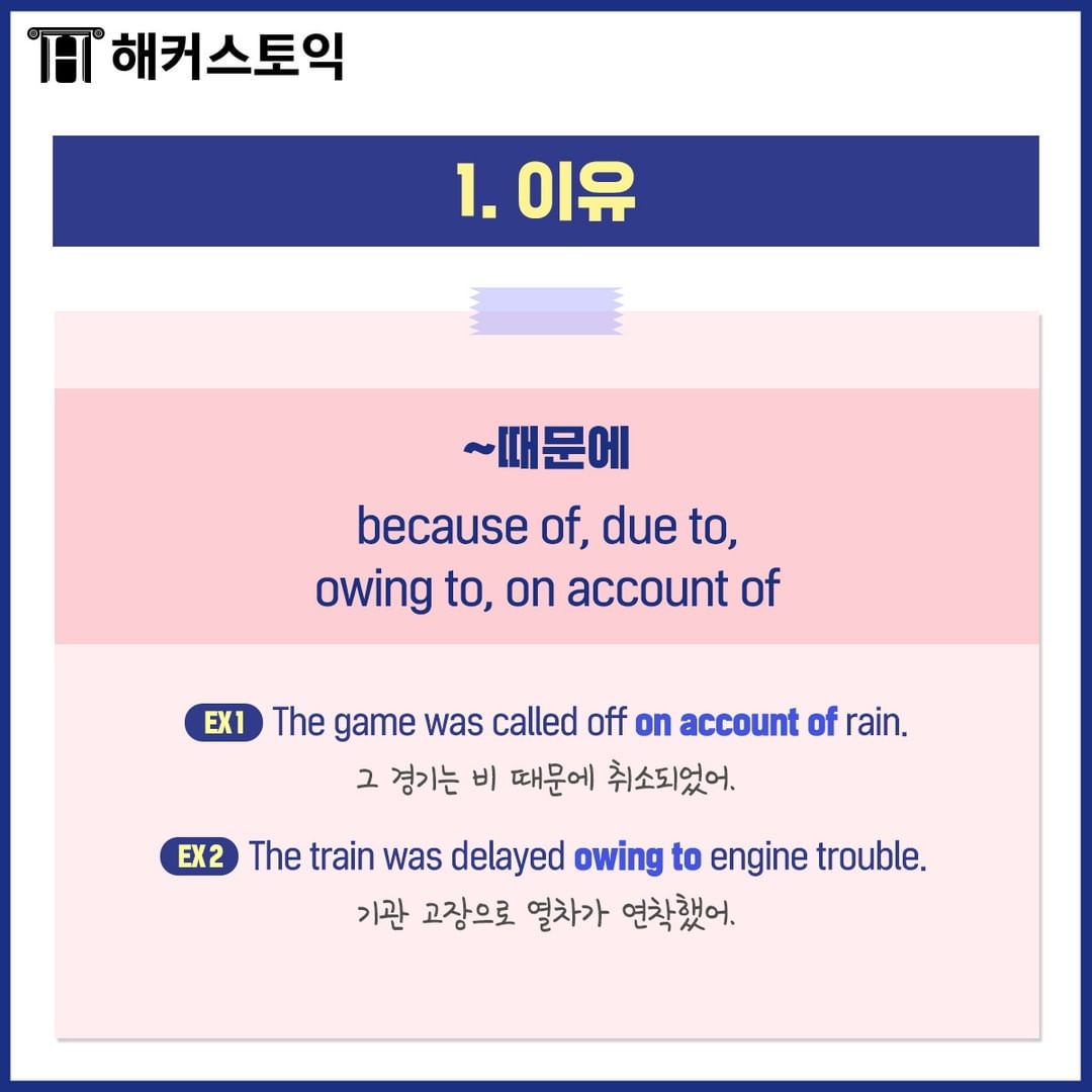 오늘 배운 이유/양보/목적 전치사