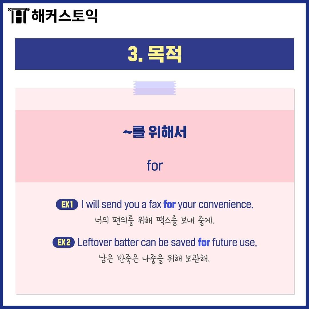 이유, 양보, 목적, 제외, 부가 등을 나타냅니다!