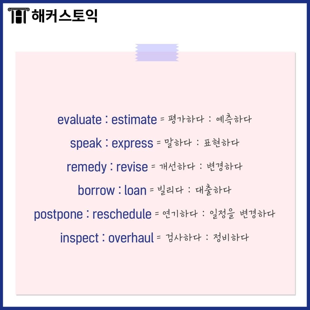 오늘 배운 단어들 다 중요한 유사의미를 가진 동사들이니