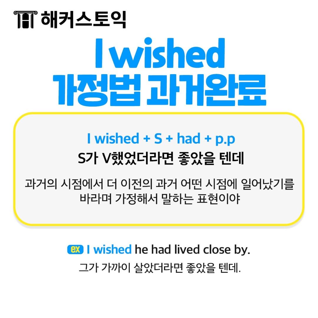 과거의 시점에서 더 이전의 과거 어떤 시멎에 일어났기를 바라며 가정해서 말하는 표현이에요!