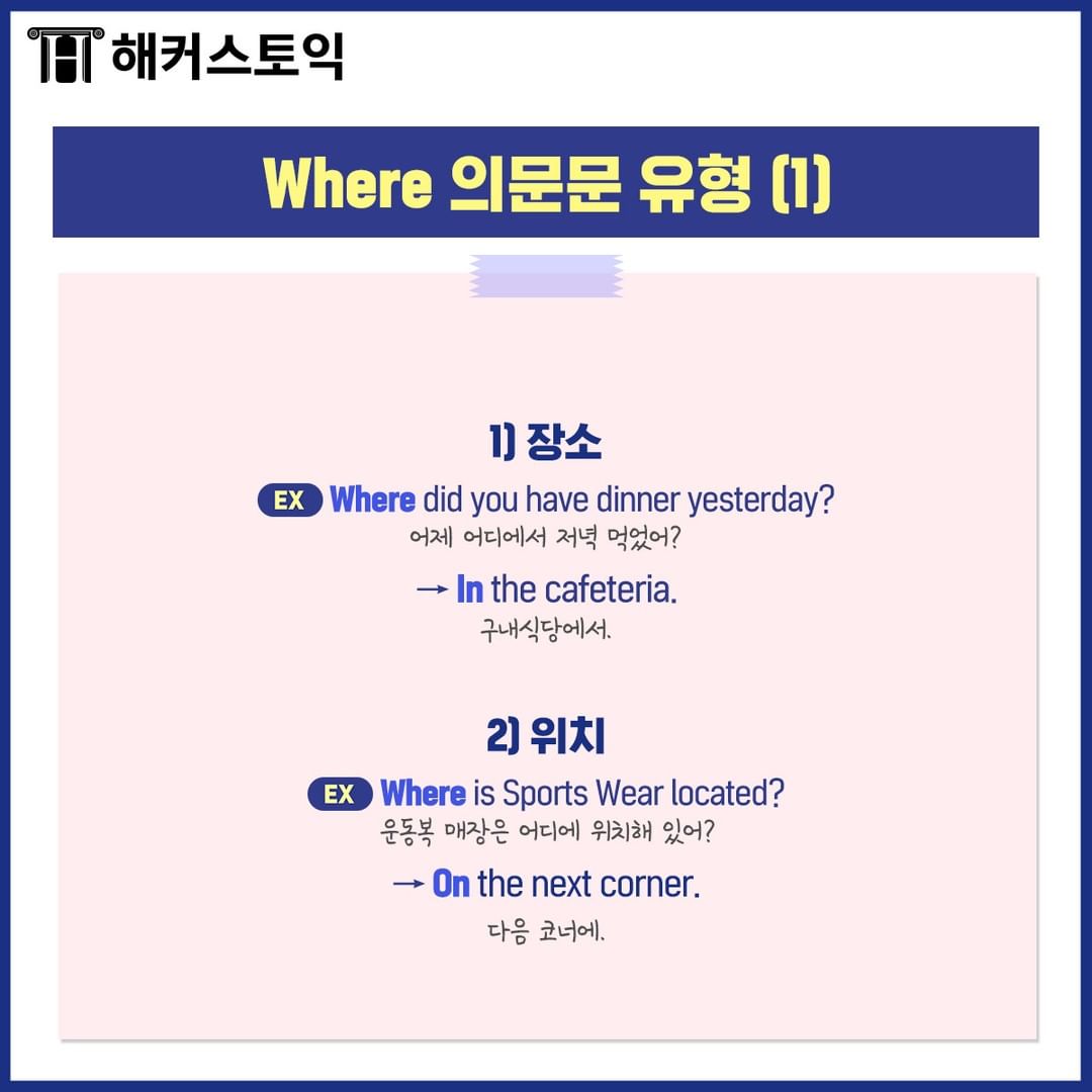 장소, 위치, 방향, 정보, 사물의 출처를 묻는 의문문이에요!