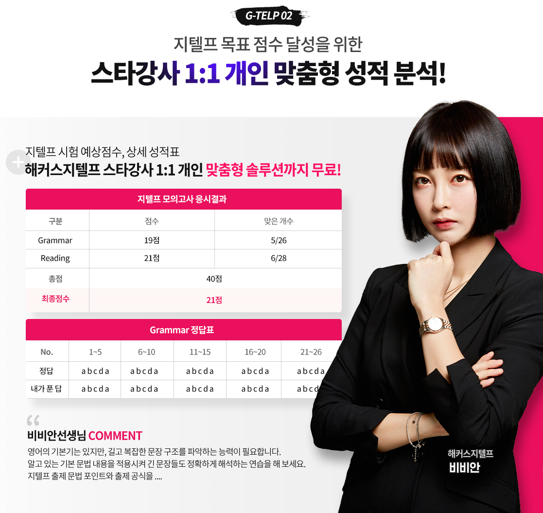 본인의 약한 부분을 완벽하게 보완하고 지텔프 시험 때 200% 실력발휘할 수 있을거랍니다!