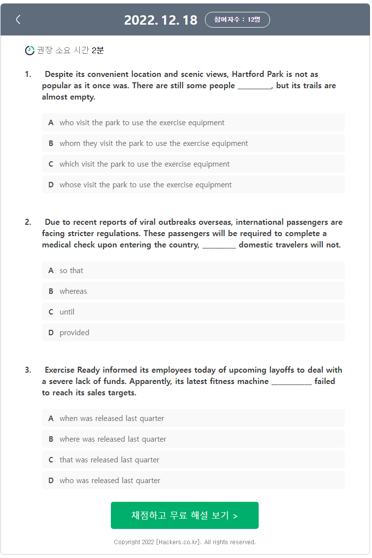 매일 지텔프 문법 문제 풀기