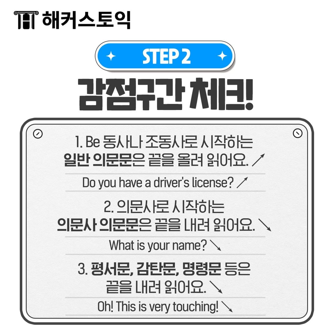 3. 평서문, 감탄문, 명령문 등은 끝을 내려 읽어요