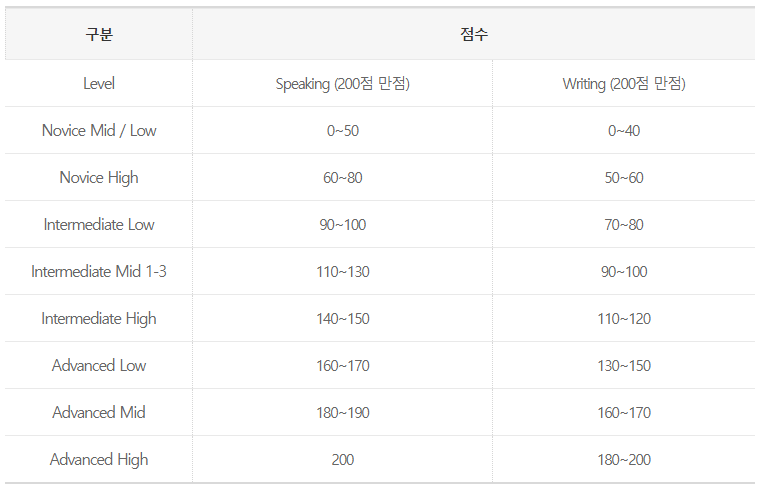 토익스피킹 점수 구분 기준