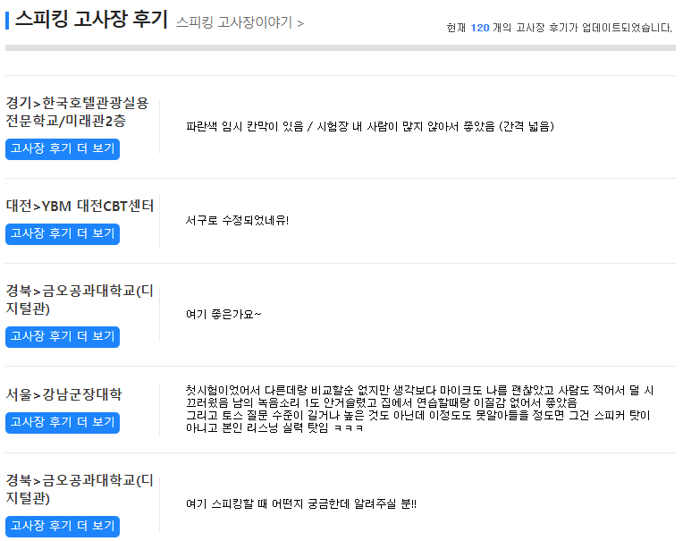 스피킹 고사장 Best 3