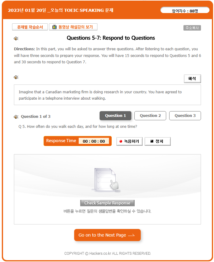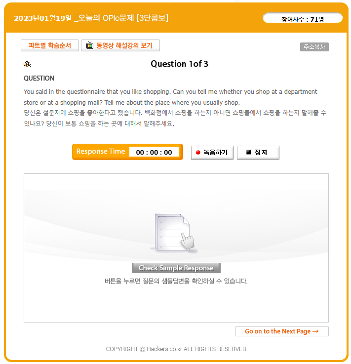 실제 오픽시험과 동일한 형식으로 문제를 듣고 문제에 대한 본인의 답변을 말하면서