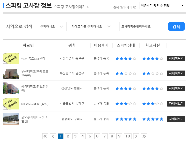총 66개의 스피킹고사장에 대한 정보 무료로 볼 수 있답니다!