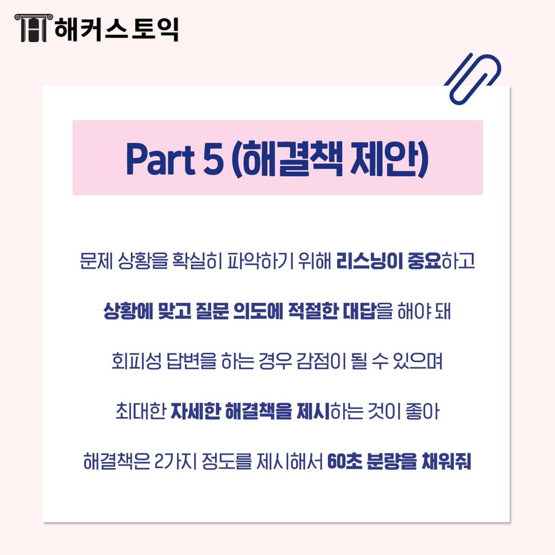 리스닝이 중요하고 상황에 맞고 질문 의도에 적절한 대답을 해야 해요