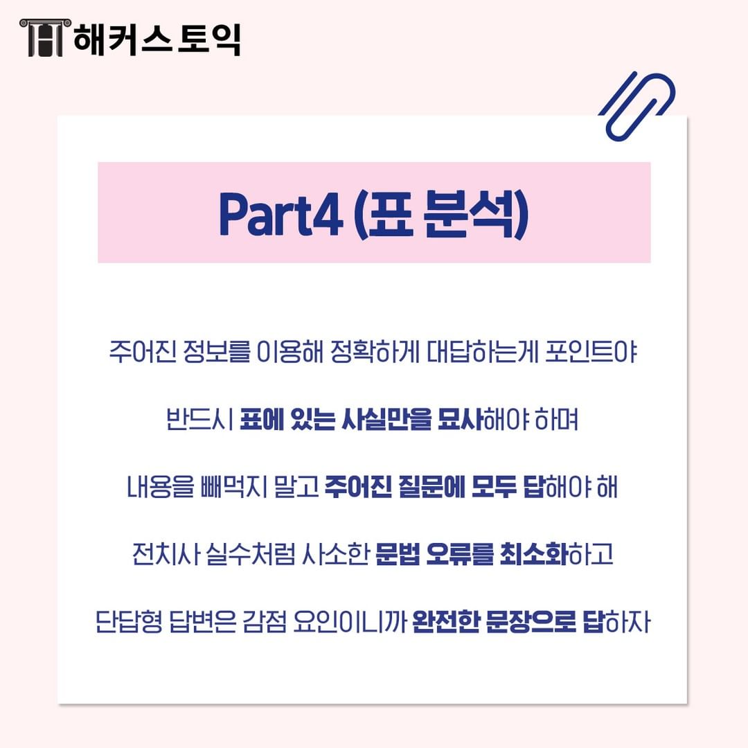 파트 2에서는 보이는 사실 그대료 묘사해야 감점을 피할 수 있어요~