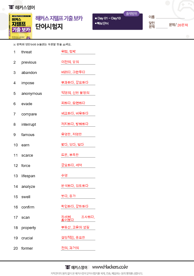 지텔프시험 공부하는 수험생들이라면 특히, 해커스 지텔프 기출 보카로 공부하는 분들이라면