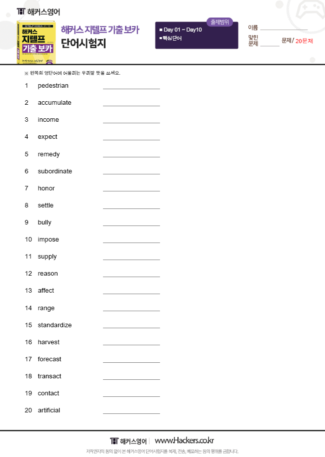 지텔프 단어시험지 생성기