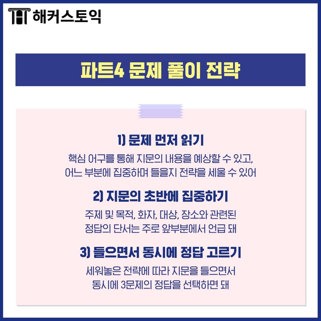 문제 풀 때 꼭 적용해서 파트 4 실력과 점수 모두 올려보아요~