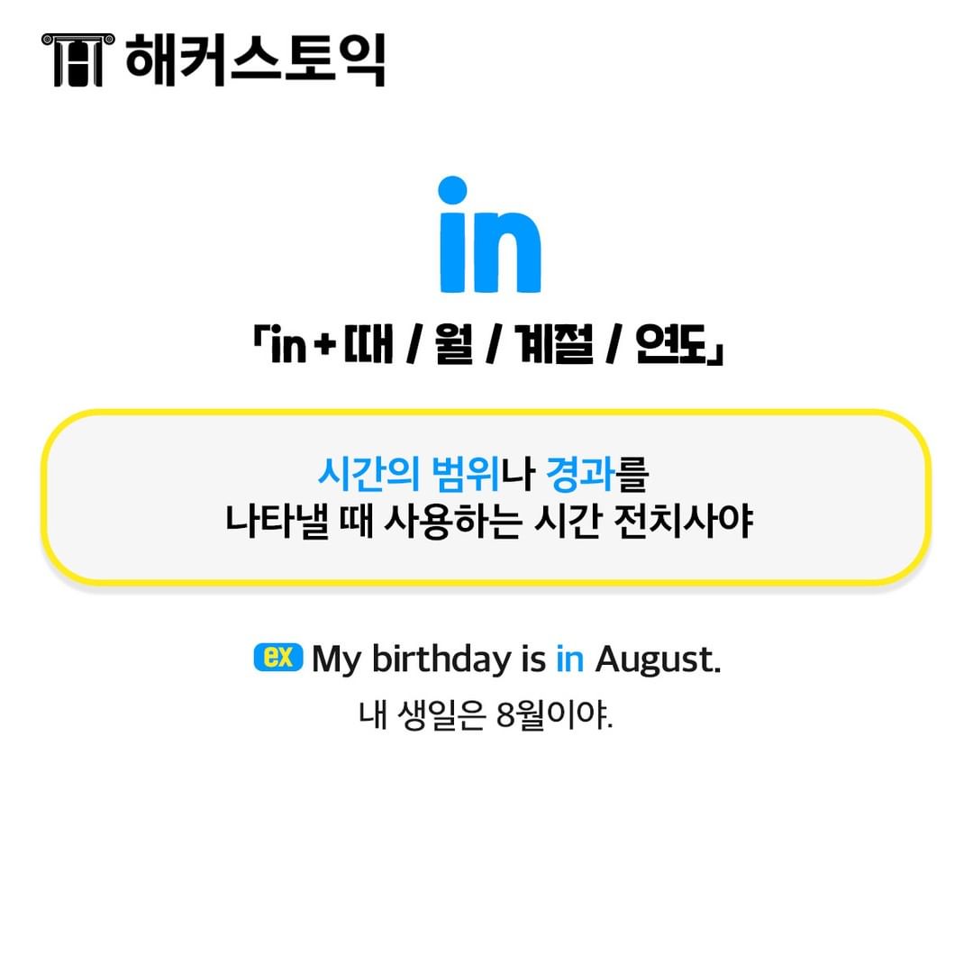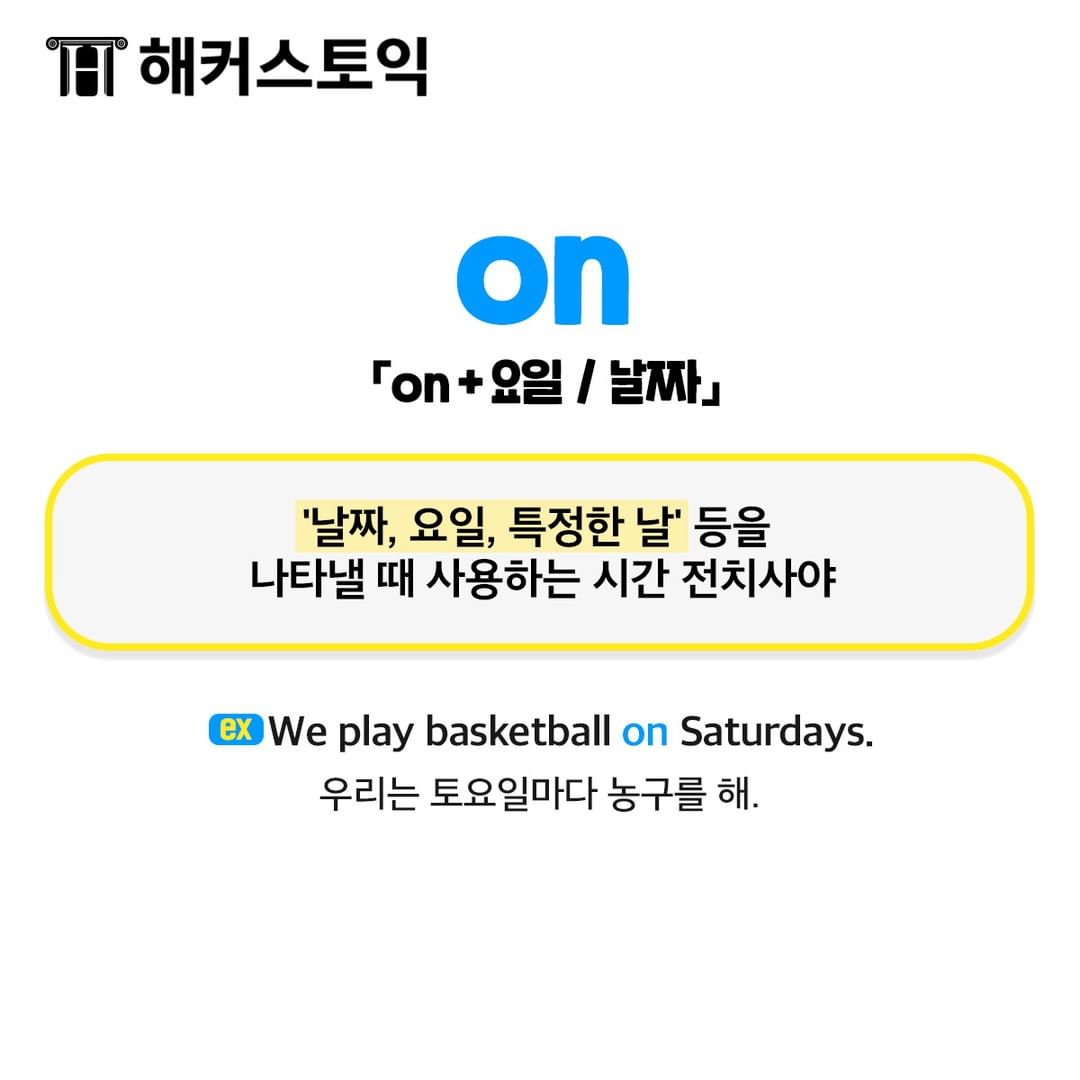'날짜, 요일, 특정한 날' 등을 나타낼 때 사용하는 시간 전치사에요!