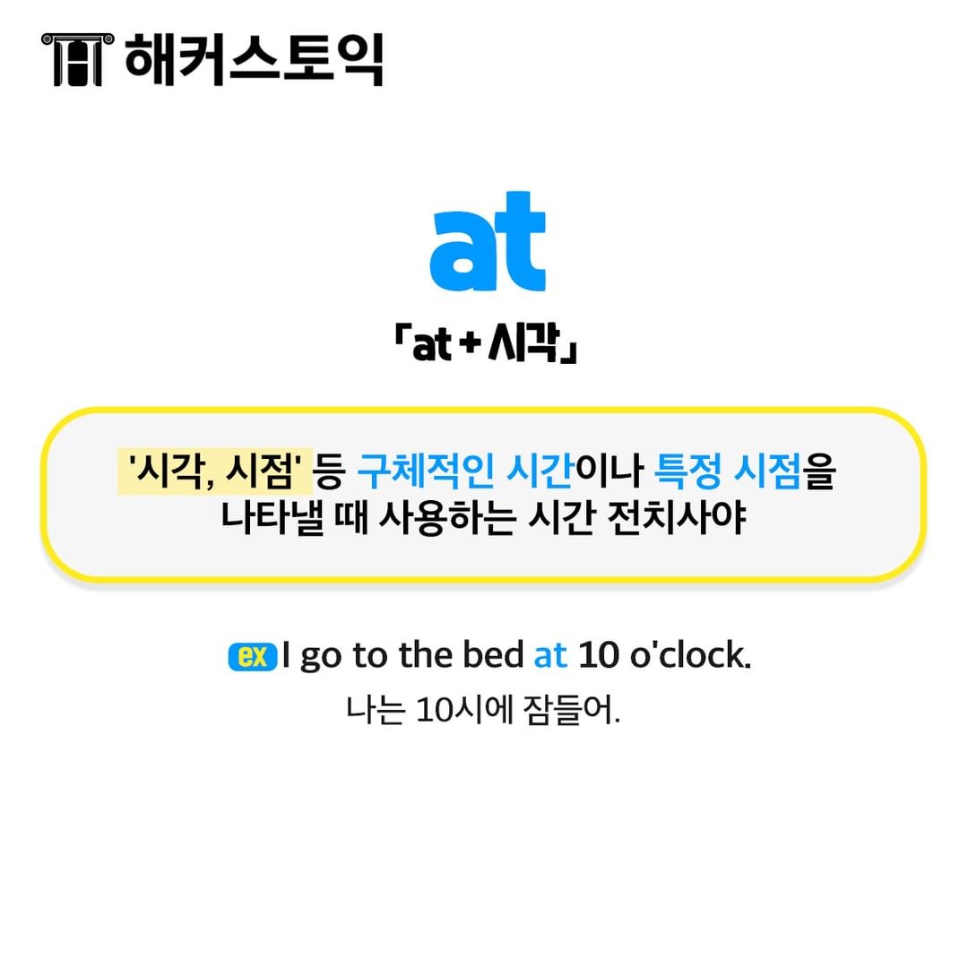 '시각, 시점'등 구체적인 시간이나 특정 지점을 나타낼 때 사용하는 시간 전치사에요
