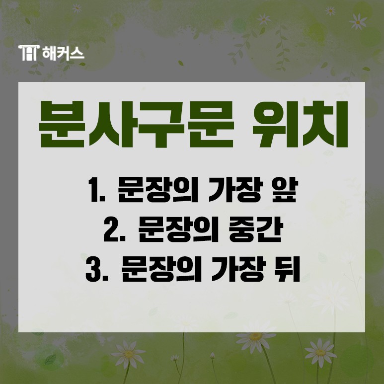 또는 문장의 가장 뒤에 위치할 수 있습니다.