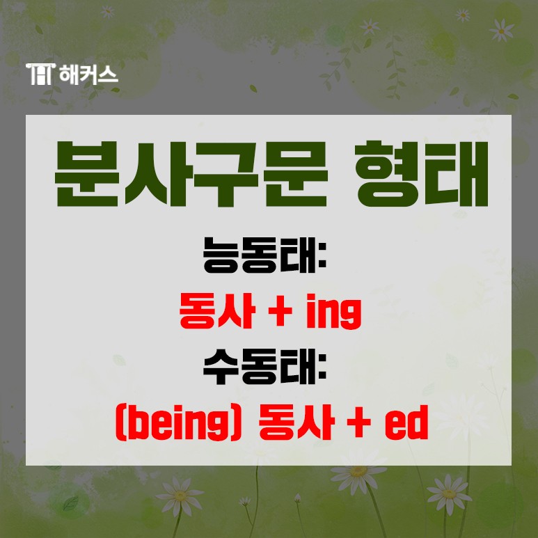 분사구문 만드는법은 물론영문법의 전반적인 개념을쉽고 재밌게 알려주는해커스 그래머 게이트웨이 교재, 인강과 함께영문법 정리 완성해보세요! :)