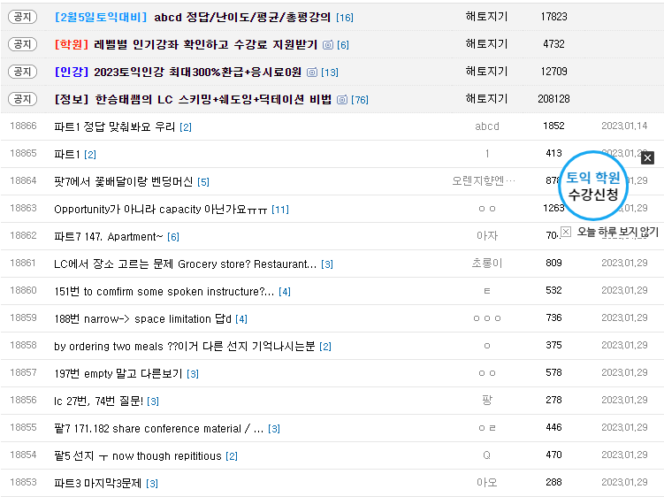 토익자유게시판에서는 토익 시험에 대한 모든 것