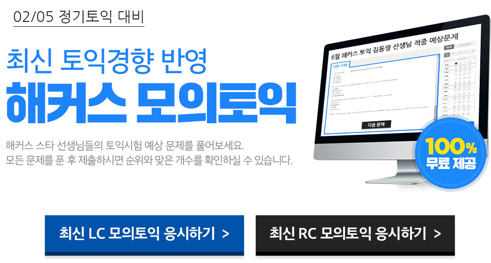 2월 모의토익은 해커스 스타 강사분들이 직접 선정한 문제를