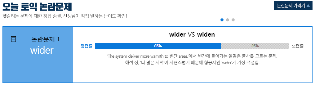 오늘의 토익 난이도뿐만 아니라 토익 최신 경향까지 알려주시구요~