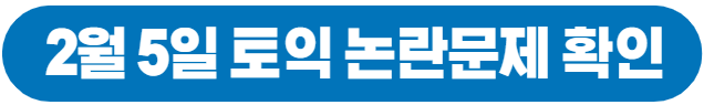 그래서 오늘은 첫번째로 2월 5일 토익 논란문제부터 알아본 후,