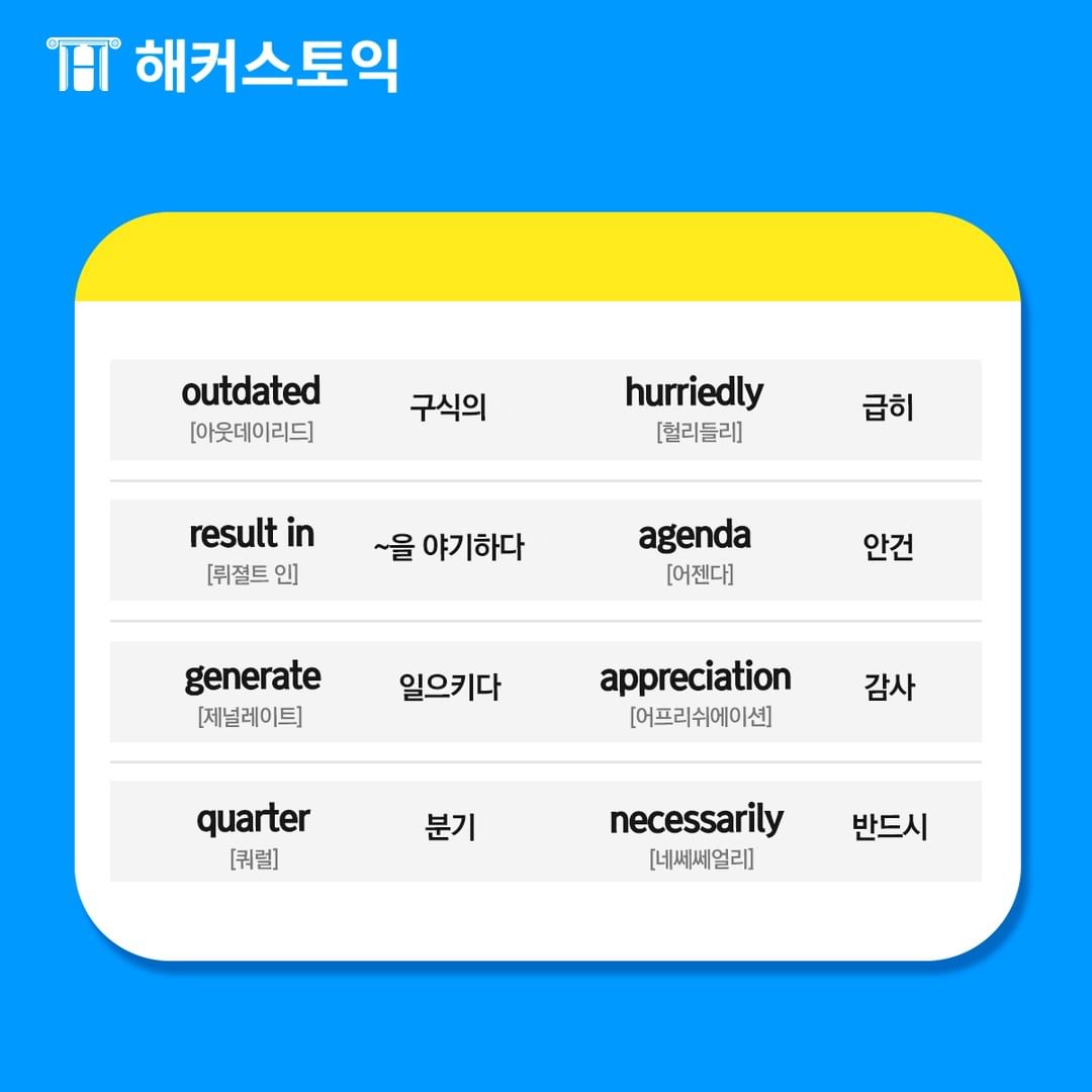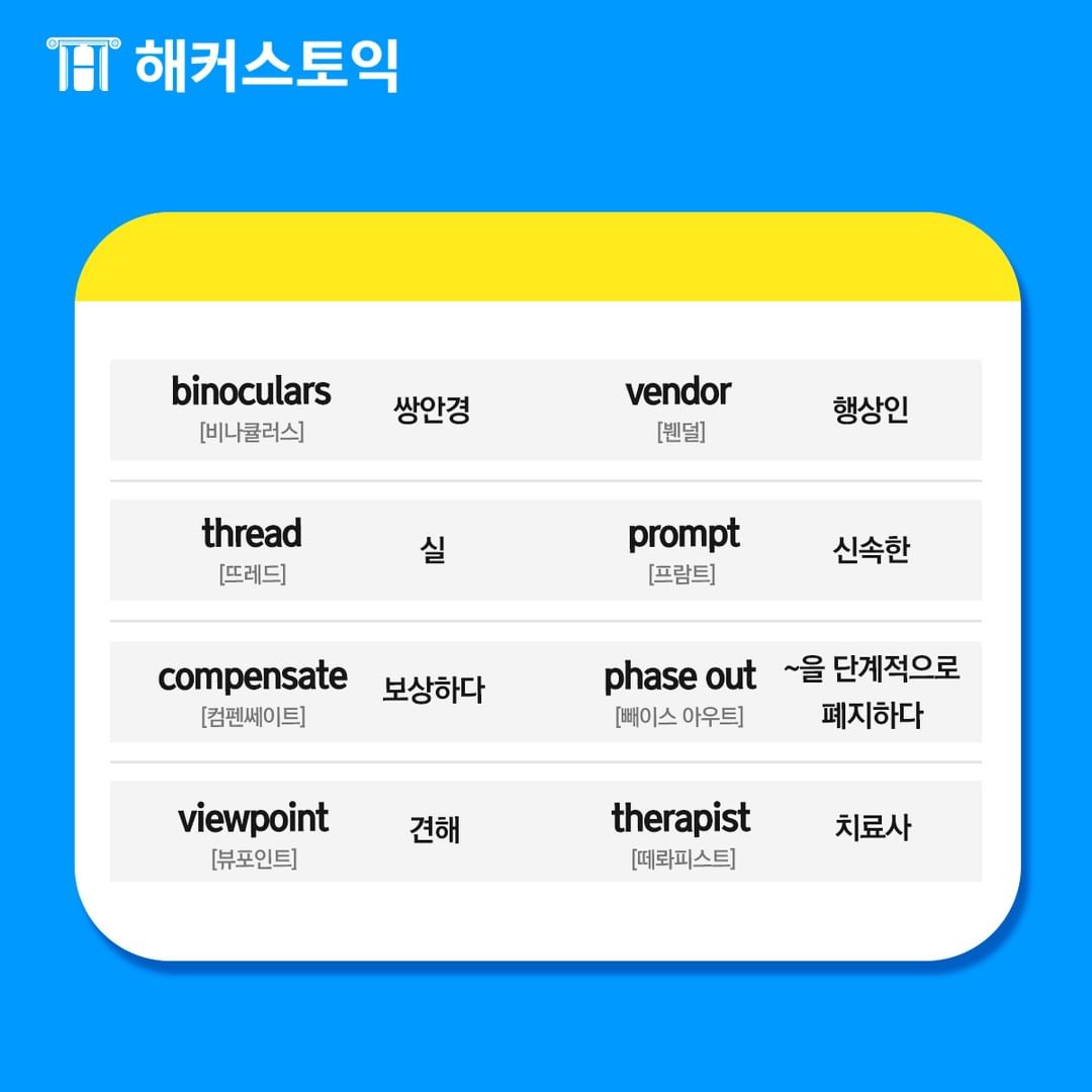 | 토익 D-1 빈출단어 (1) | 2023.02.08 |