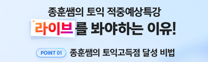 장종훈쌤의 LIVE 토익적중예상특강은 필수시청이에요!