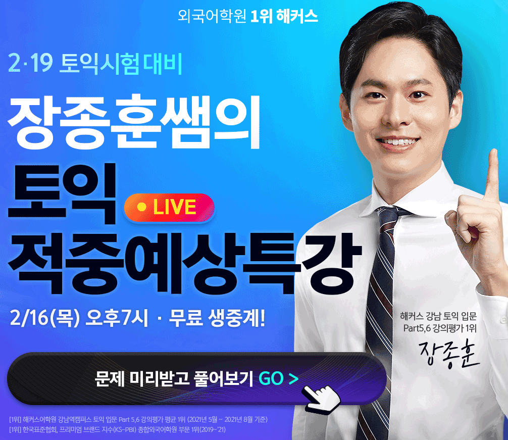 2월 19일 장종훈쌤의 LIVE 토익적중예상특강