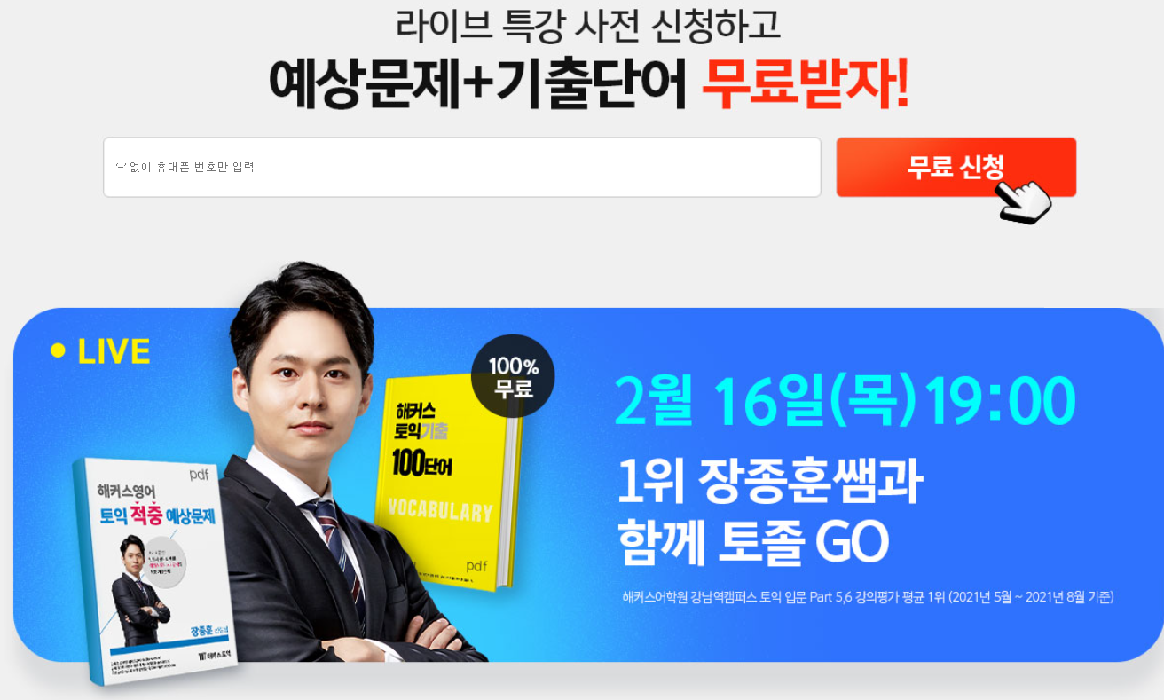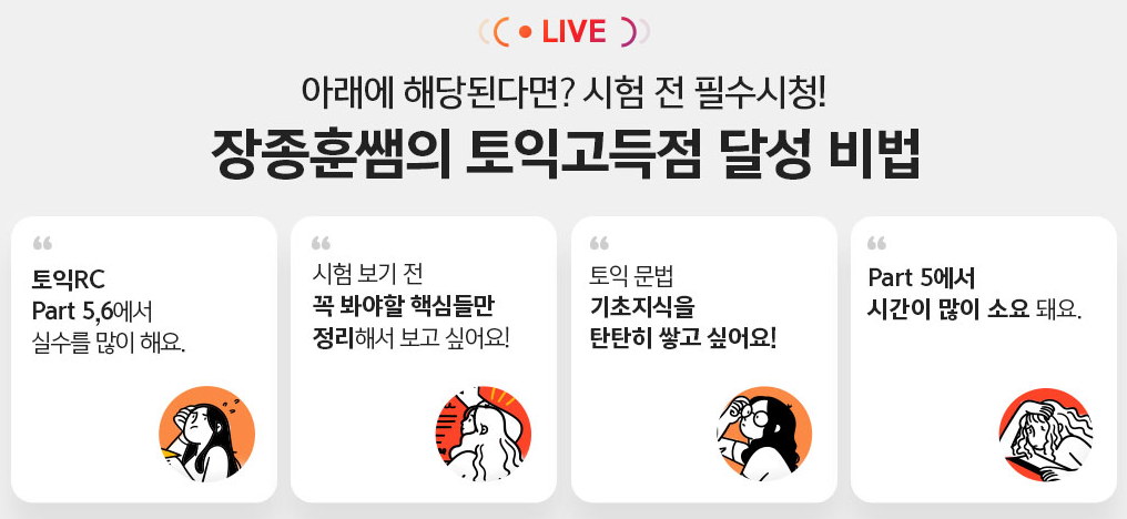 지금 바로 장종훈쌤의 LIVE 토익적중예상특강 사전 신청▶