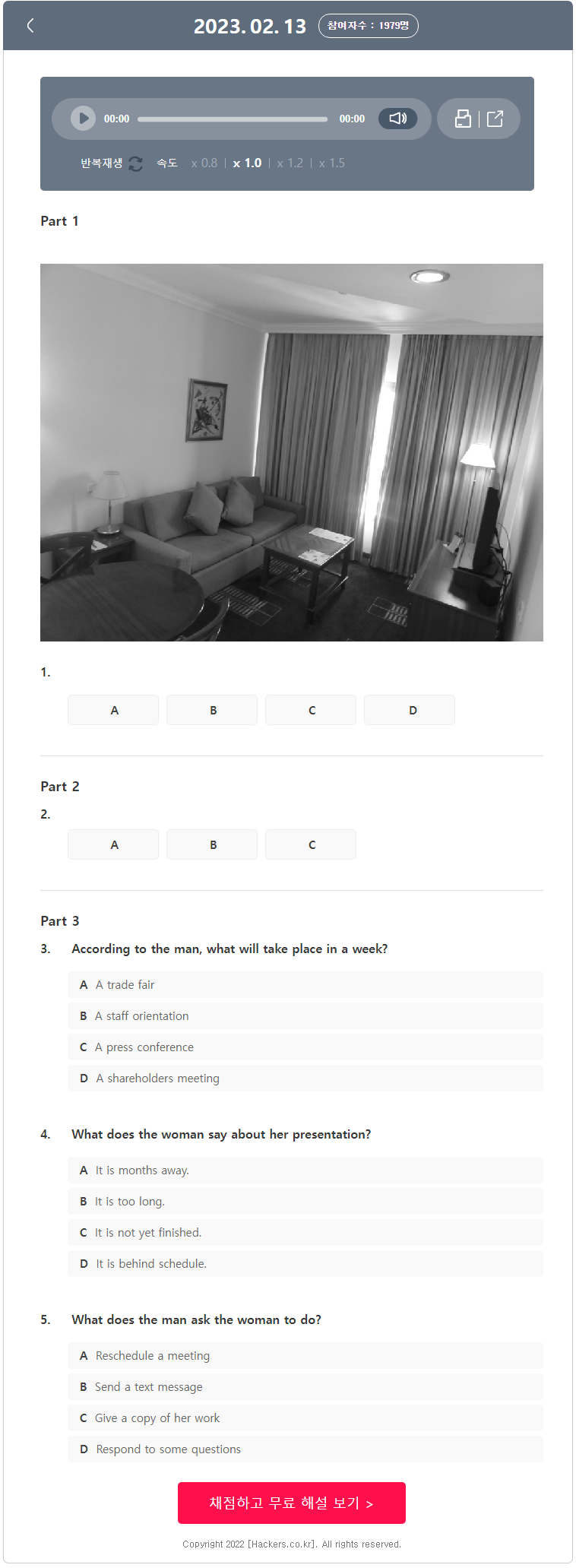 100% 무료로 LC 토익 모의고사 문제를 제공하는 컨텐츠랍니다!