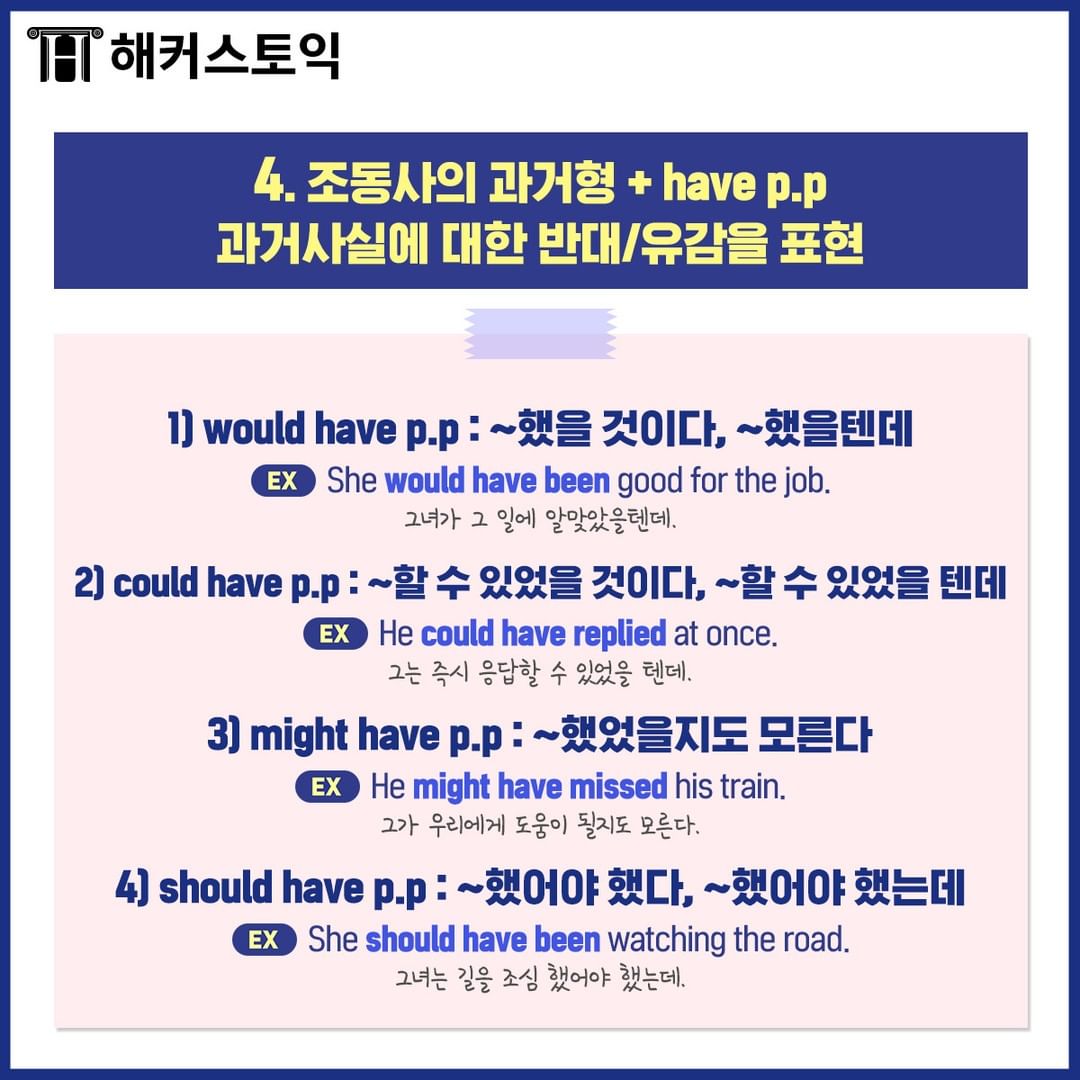4) should have p.p : ~했어야 했다, ~했어야 했는데