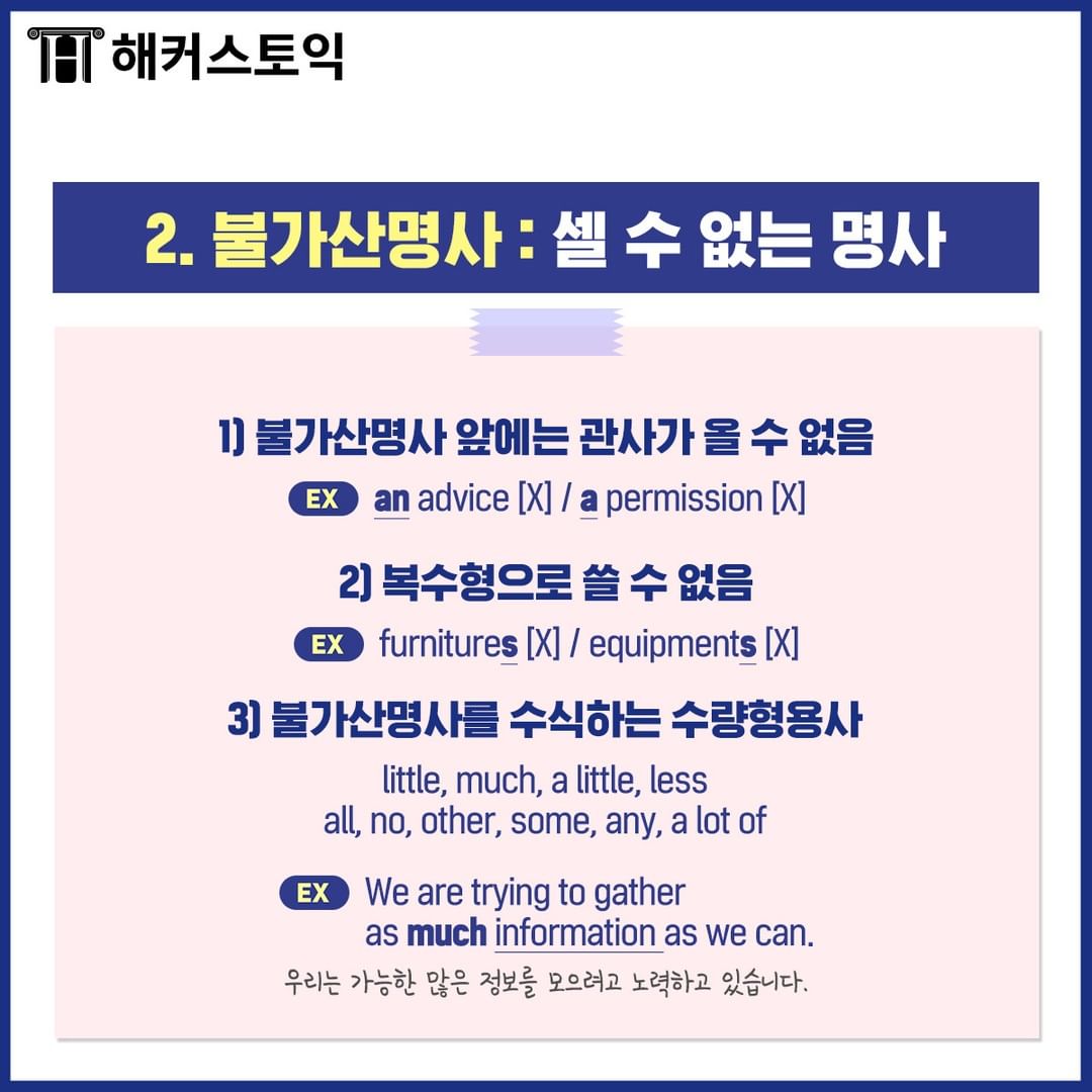 2. 불가산명사: 셀 수 없는 명사