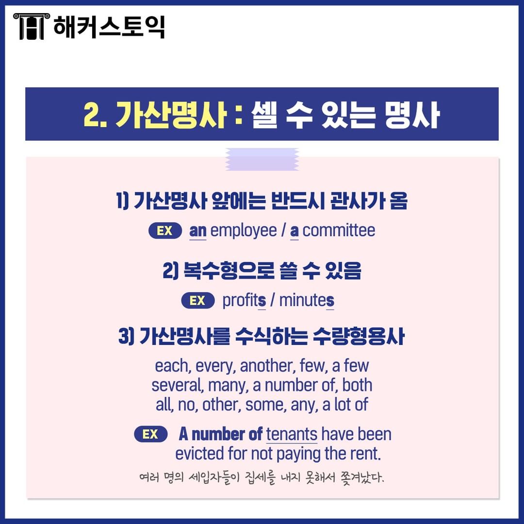 2. 가산명사 : 셀 수 있는 명사