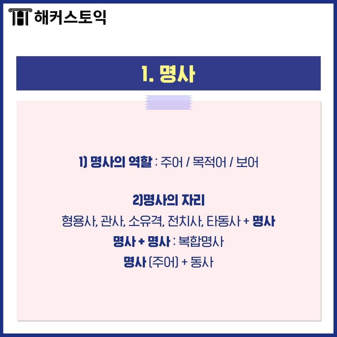 1) 명사의 역할 : 주어 / 목적어 / 보어