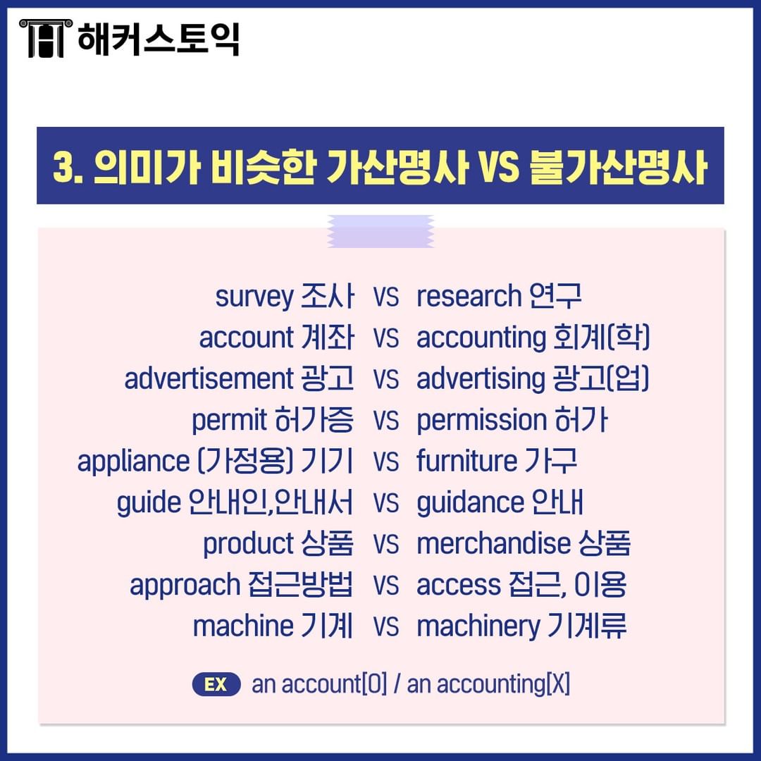 3. 의미가 비슷한 가산명사 vs 불가산명사
