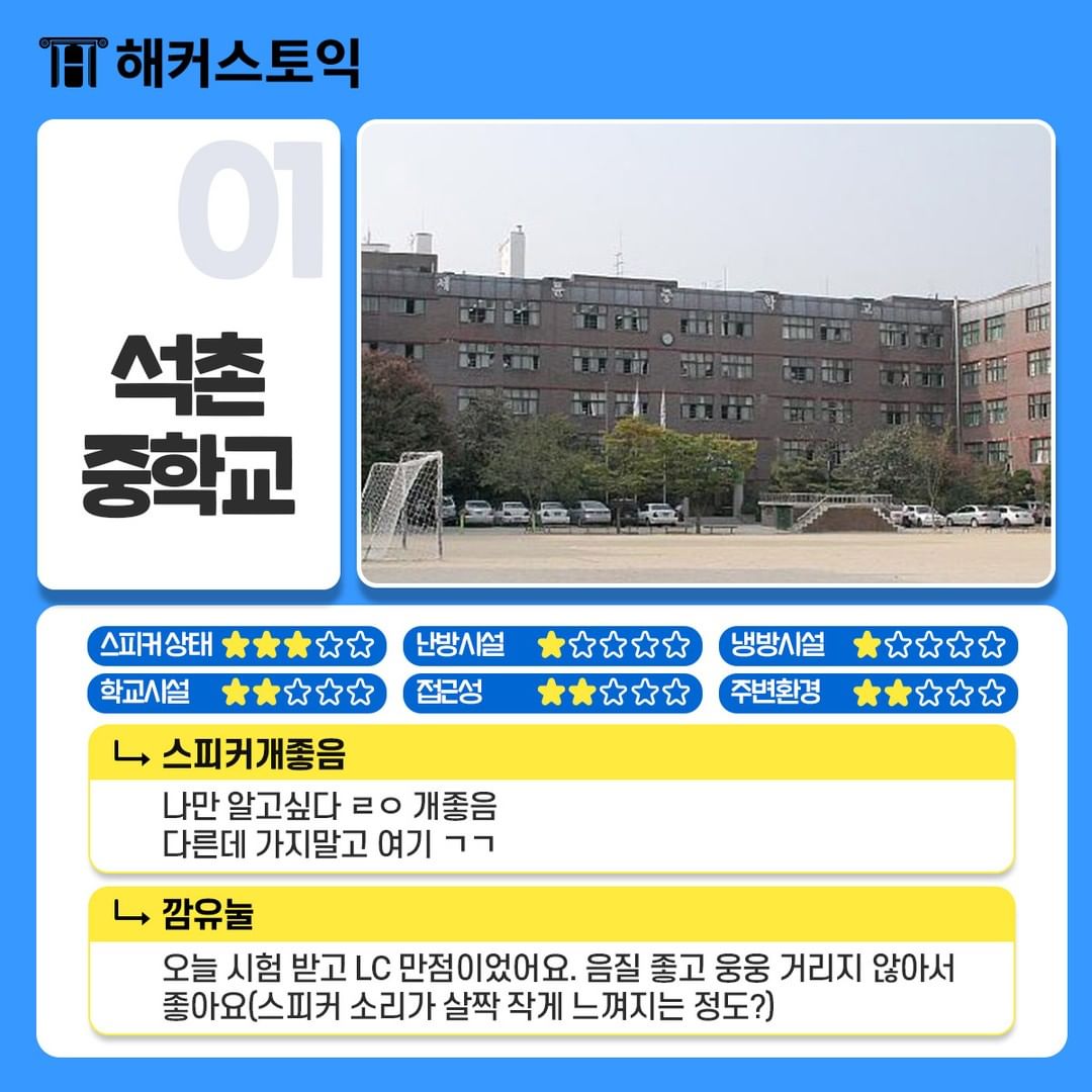 석촌 중학교는 스피커에 대한 평이 아주 좋네요
